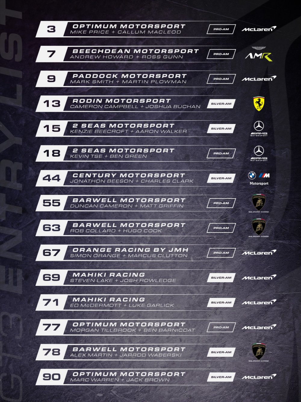 + Provisional full-season British GT entry list
